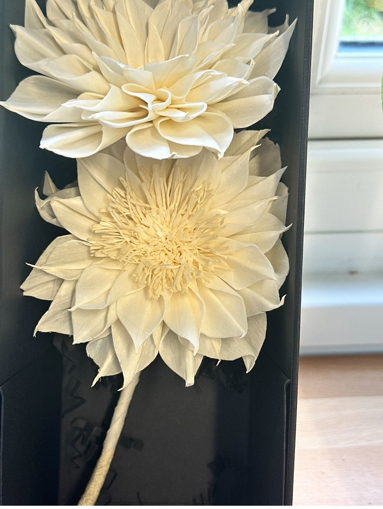 Crafted from the tapioca wood plant (cassava)(or recycled paper )these diffuser flowers showcase the delicate artistry of hand-made blooms.